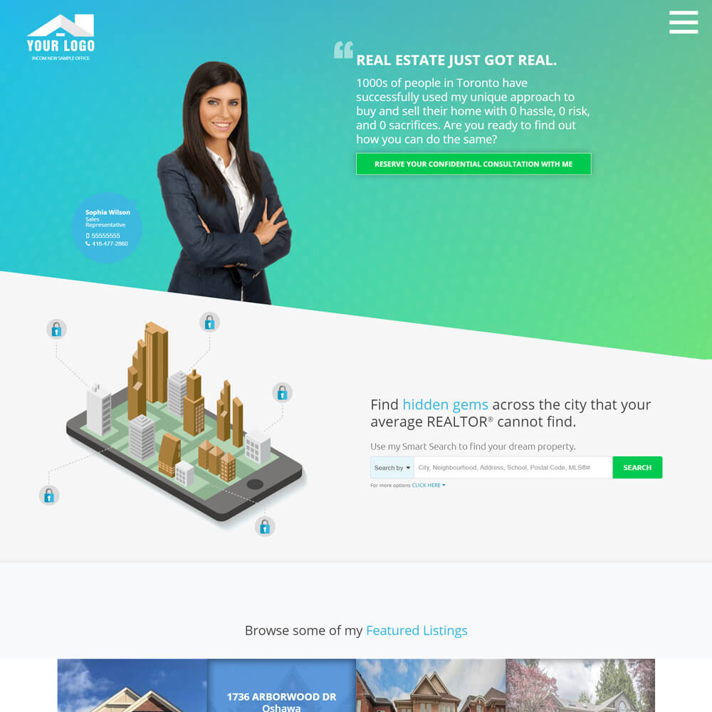 Class: Premium Premium themes are an additional $4.95/m. This grants you access to ALL Premium website designs that add a modern spin to your real estate website. Plus, you can jump from one theme to another.Razor combines sharpness with professionalism. This theme is perfect for displaying multiple listings, content, and tools in an orderly yet aesthetically pleasing manner. The box-style architecture gives off a bold visual impact without compromising the visibility of the call-to-actions.
