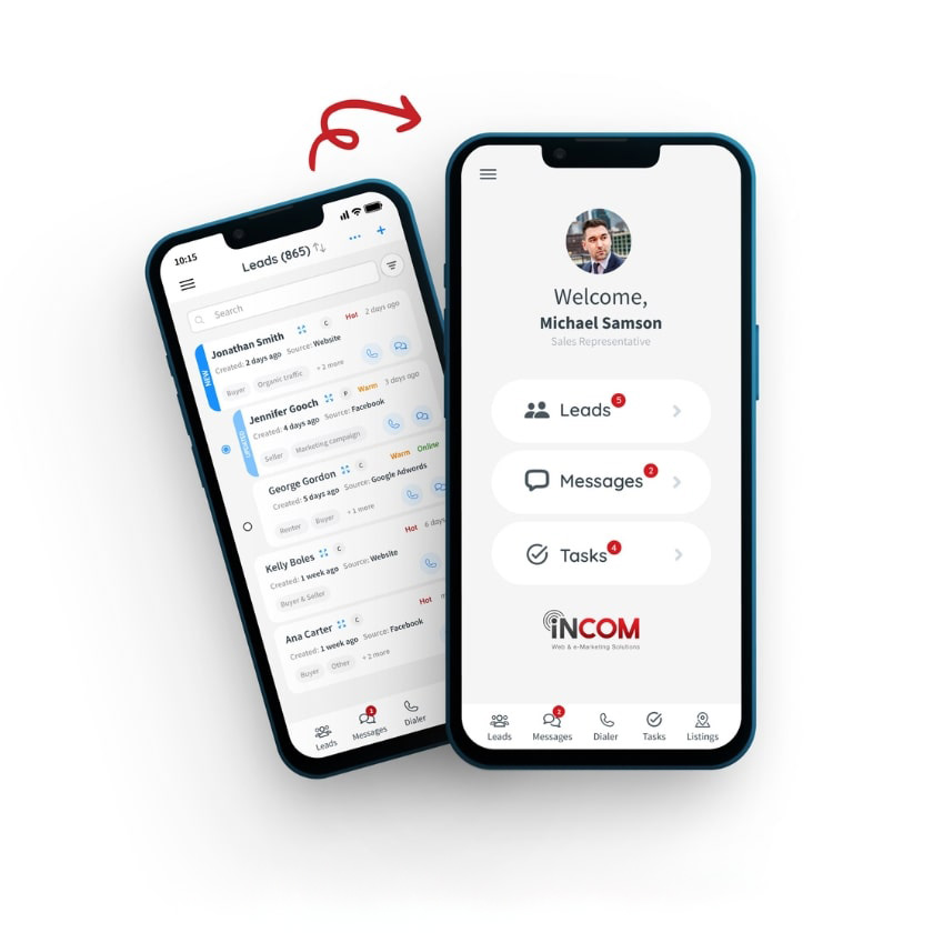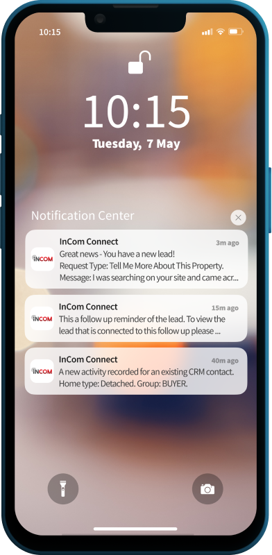 Convert more leads and close deals on the go with our simple yet powerful mobile real estate CRM app. Designed for agents and brokers using an InCom website, our app lets you work from anywhere. Engage with clients and prospects, search listings, and stay focused, organized, and in touch with InCom Connect.